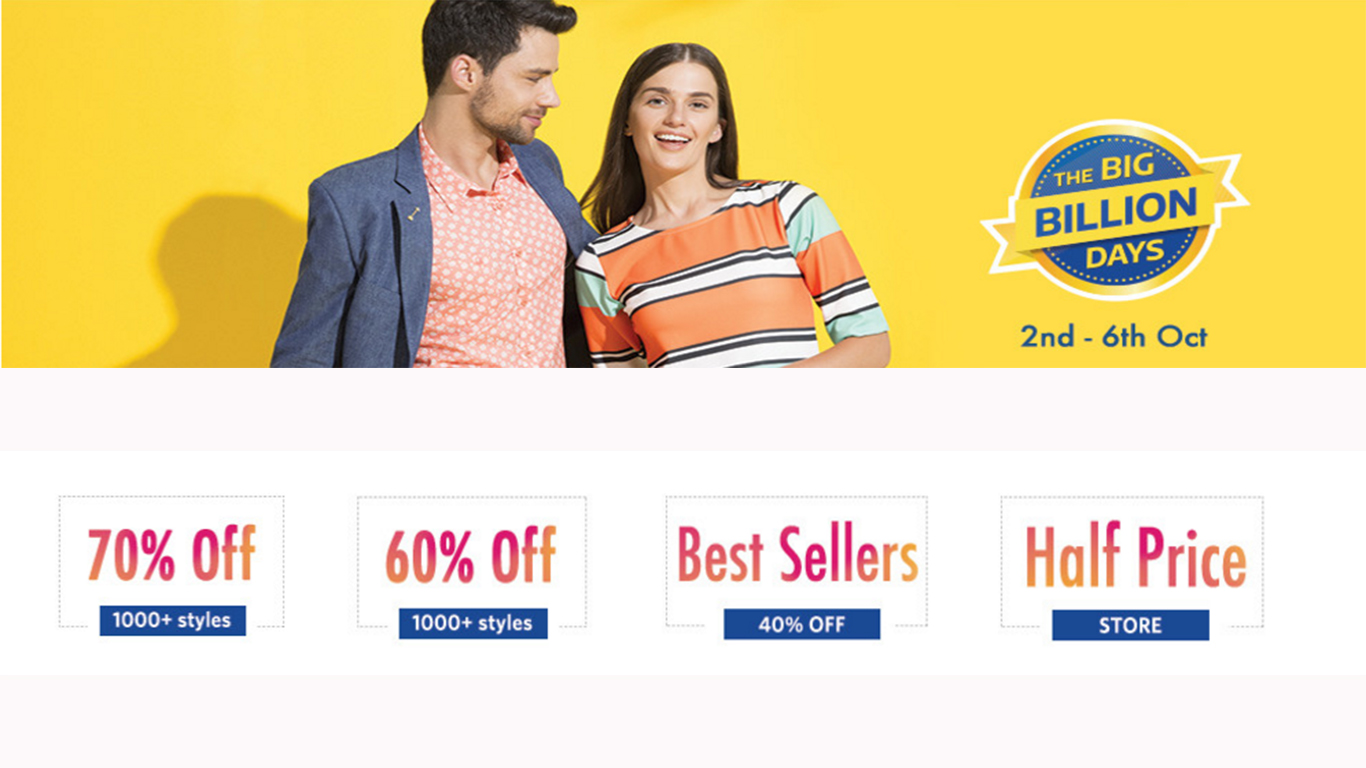- Myntra Brobdingnagian Billion Day - Flat 70% Off On Everything + 10% Off